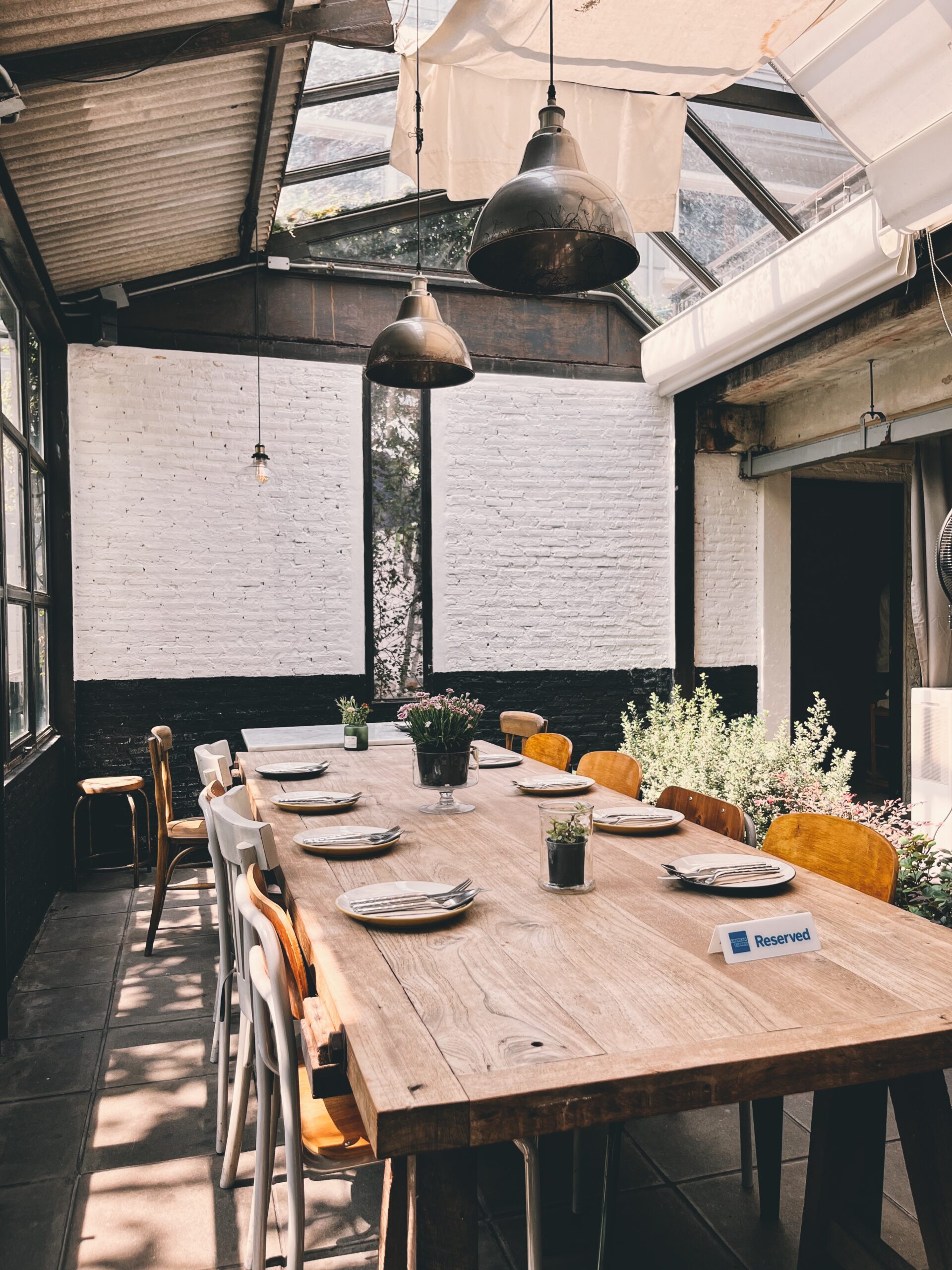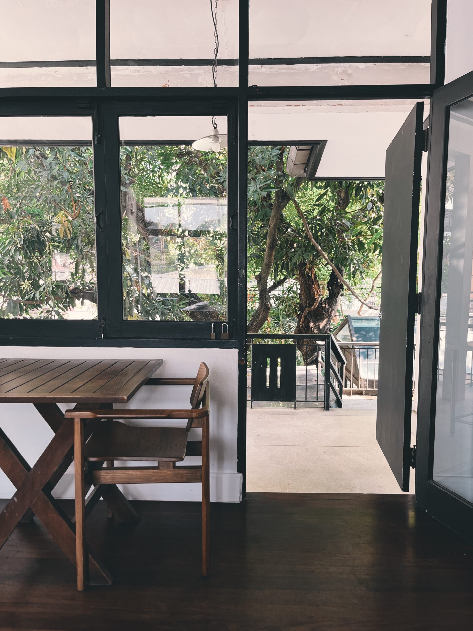 這張桌子的隔壁區域,也是讓我當初被Bitterman吸引而來的原因。屋頂上方有部分以透明的採光罩取代原有的遮蔽式建材,讓陽光得以大片灑落在室內,營造出一種午後的靜謐之感。曼谷最不缺的就是陽光,因此當地許多店家都十分懂得引導光線配合著室內空間和軟裝搭配,成為一幅隨處皆美的畫面。